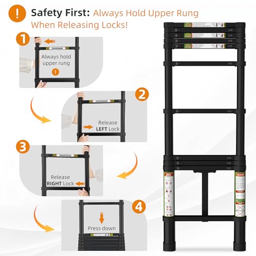 Telescoping Ladder,12.5 FT Extension Ladder, Heavy Duty 330lbs Max Capacity, Multi-Purpose Collapsible Ladder for RV or Outdoor...