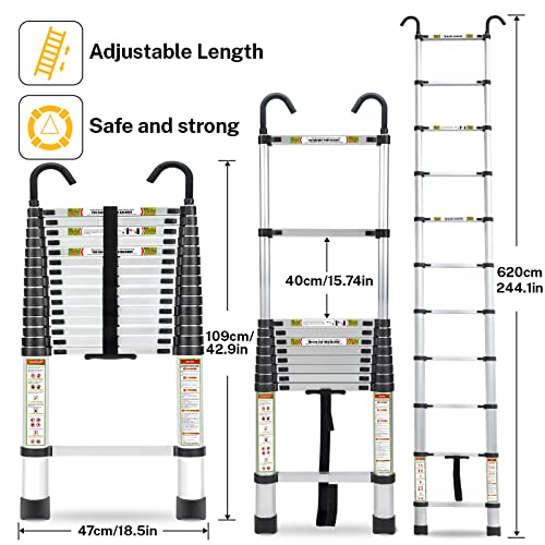 RIKADE Telescopic Ladder, 20.34FT Aluminum Telescoping Ladder with Stable Hook and Non-Slip Feet, Portable Extension Ladder for...