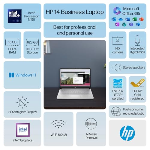 HP 14 Laptop Student Business 2025 Flagship Computer, AI Copilot, 4-Core 13th Gen Intel CPU, 16GB RAM 628GB Storage (128GB UFS+...