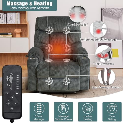 FUNECORP Big Man Power Lay Flat Lift Chair Oversized Recliner Dual Motor Heat Vibration for Elderly, Overstuffed Electric 28" E...