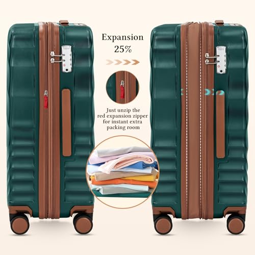 Coolife Luggage Sets, 3 Piece Hard Shell Suitcase Set with Spinner Wheels, Expandable Large Checked Luggage, Lightweight Rollin...