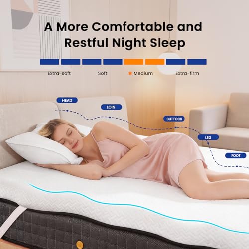 ChiXpace Dual Layer 4 Inch Memory Foam Mattress Topper Queen - 2 Inch Gel Memory Foam and 2 Inch Pillow Top Mattress Pad, 7-Zon...