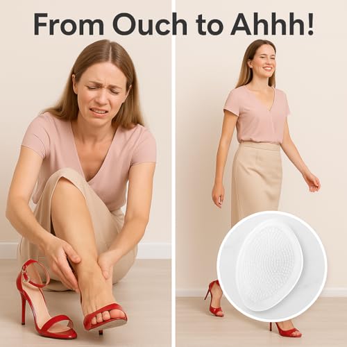 KTSAY Metatarsal Pads Women, Gel Ball of Foot Cushions for Pain Relief in Shoes, Non-Slip Heel Inserts, One Size Fits All (Clea...