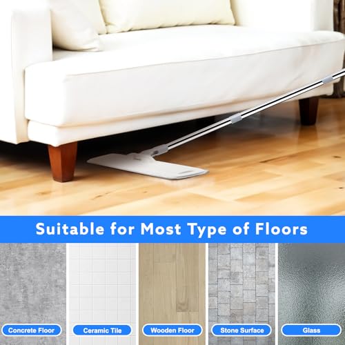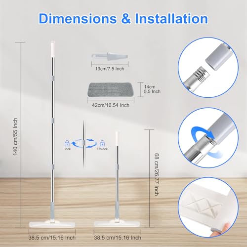 wlich Microfiber Mop for Cleaning Floors,55 Inch Extendable Flat Mop with 4 Reusable Washable Pads, 1 hook, 1 wall piece, and 1...