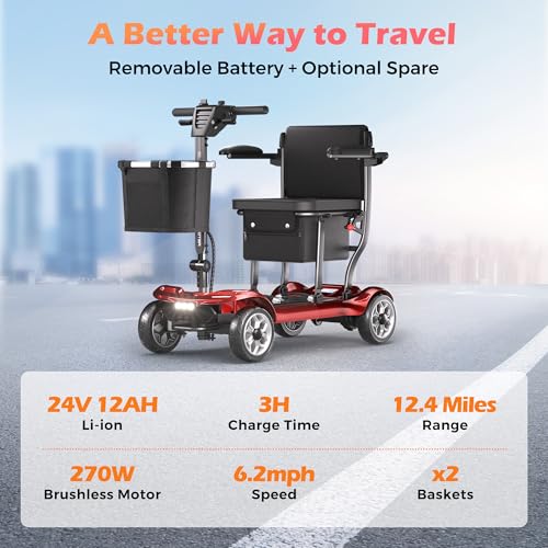 Lightweight Mobility Scooter for Adults & Seniors - Cruise & Airport Approved, 43lb Foldable Portable Motorized Scooters with R...