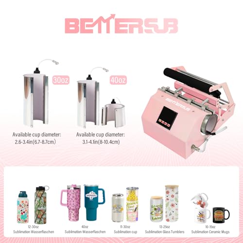 BetterSub 3in1 40 OZ Tumbler Mug Heat Press Machine 30 OZ 20 OZ 16 OZ Sublimation Straight Skinny Tumbler Mug,11 OZ 15 OZ 16 OZ...