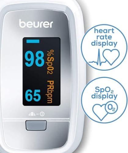 Beurer PO30 Fingertip Pulse Oximeter, Pain Free Blood Oxygen Saturation & Heart Rate Monitor with 4 Display Options, Lanyard, S...