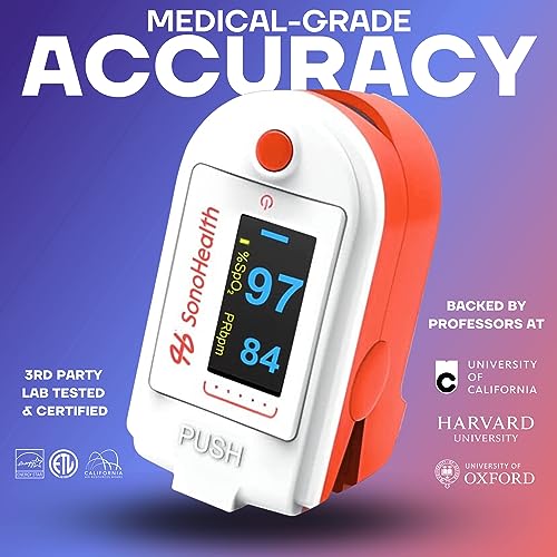 Pulse Oximeter by SonoHealth - Fingertip Blood Oxygen Saturation Monitor, Data Recording, Bluetooth-Enabled - Lifetime Mobile A...