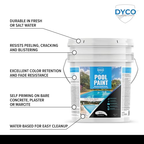 Dyco Waterborne Acrylic Pool Paint, Resistant to UV, Water, Salt, Chemicals, Fading, Cracking & More, Seals Hairline Cracks (Oc...