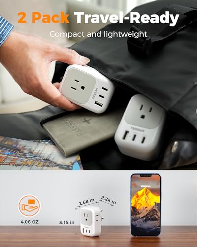 US to India Plug Adapter 2 Pack, TESSAN Type D Travel Adapter with 4 AC Outlets 3 USB Ports (1 USB C), 7 in 1 India Travel Plug...
