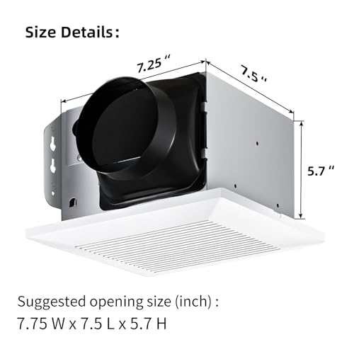 Amico Bathroom Exhaust Fan, 1.0 Sones, 80 CFM, Low Noise, Easy to Install, Ceiling Mounted Retrofit Ventilation Fans, No Attic ...
