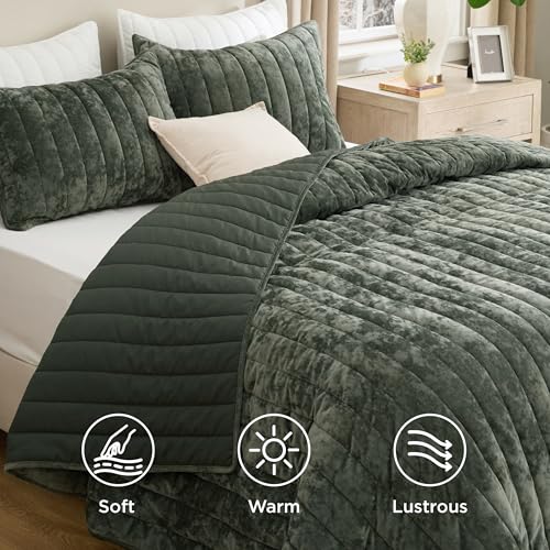 Bedsure Velvet Quilt King Size - 108"x96" Oversized King Size Comforter Set, Luxury Velvet Comforter Bedspread Coverlet, Ultra-...