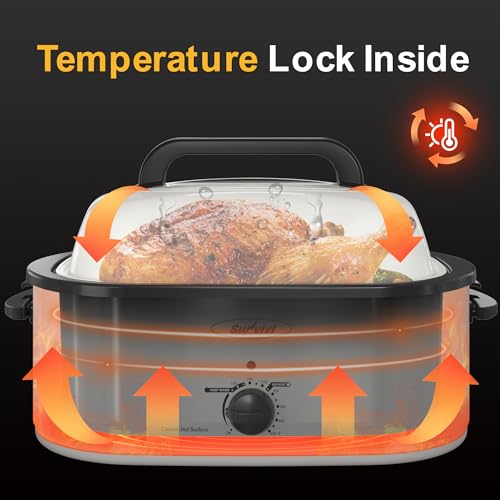 Sunvivi 24lb 20-Quart Roaster Oven, Electric Roaster Oven with Self-Basting Lid, Turkey Roaster with Unique Defrost/Warm Functi...