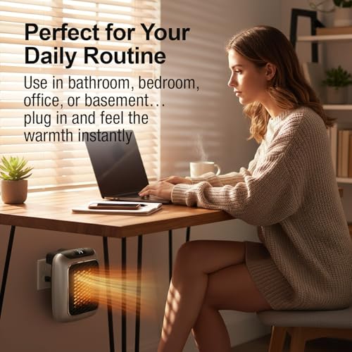 Ontel Handy Heater Turbo Wall Outlet Plug In Heater – Portable Indoor Ceramic Space Heater w/Adjustable Thermostat, 12-Hour Tim...