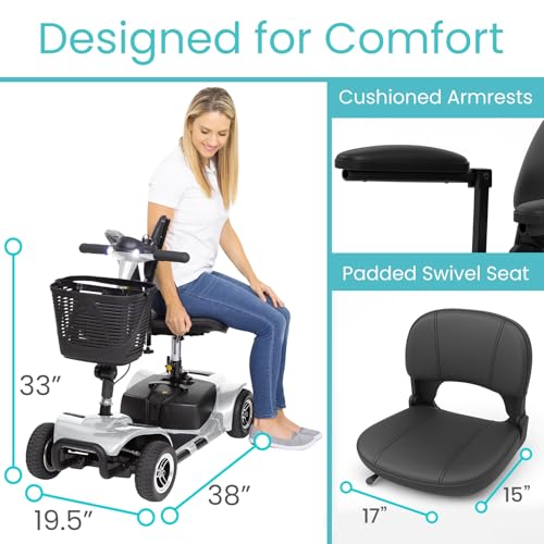 Vive 4 Wheel Mobility Scooter - Electric Powered Wheelchair Device - Compact Heavy Duty Mobile for Travel, Adults, Elderly - Lo...