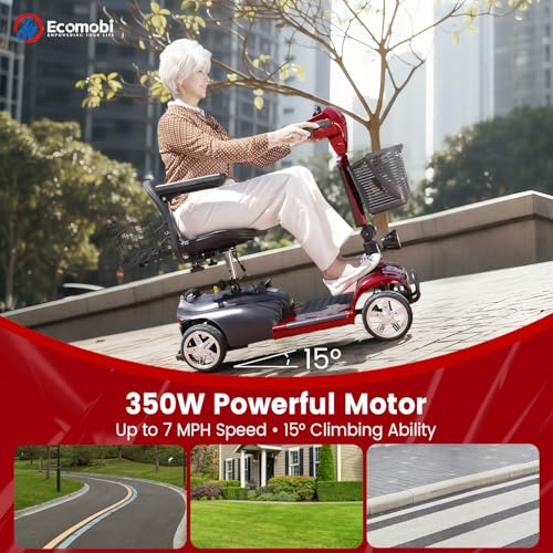 Ecomobi 15-30 Miles 4 Wheels Mobility Scooter for Adults/Seniors, 350W Powered & 8/9″ tire Electric Wheelchair Device w/Removea...