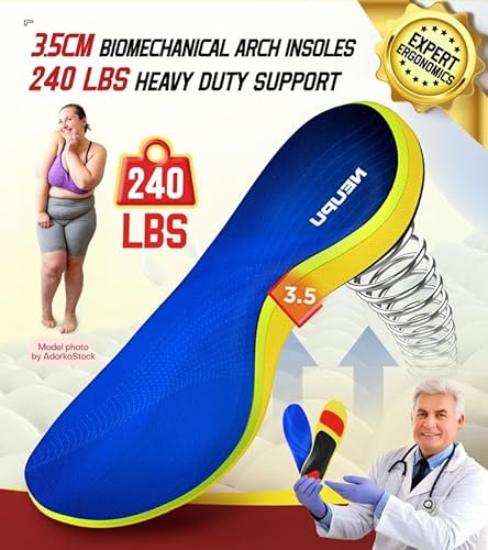 NEUPU 240+lbs Plantar Fasciitis Insoles Men Women, Comfort Heavy Duty High Arch Support Insoles for Pain Relief Absorb Shock, W...