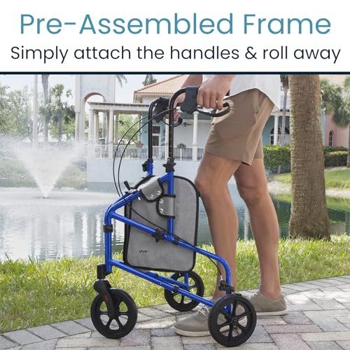 Vive Mobility 3 Wheel Walker - Three Wheeled Rollator for Seniors - Lightweight, Foldable, Narrow, Heavy Duty - for Elderly Men...