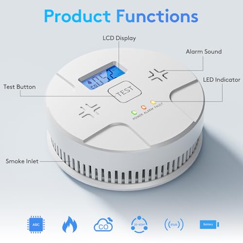 6 Packs,2 in 1 Technology, Smoke,Carbon Monoxide Detector, Co Alarm,85db Alert,LCD Readout,3 Color LED Indication,(Green Light ...