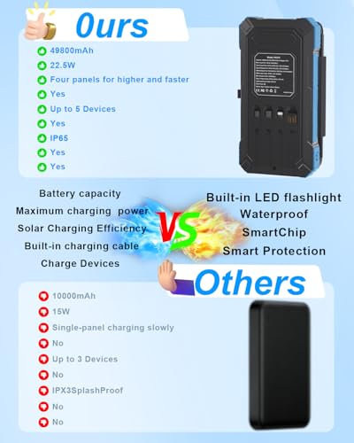 Kepswin Solar Charger Power Bank 49800mAh with 4 Built-in Cables & 3 Foldable Panels, PD22.5W Fast Portable Phone Charger, Exte...