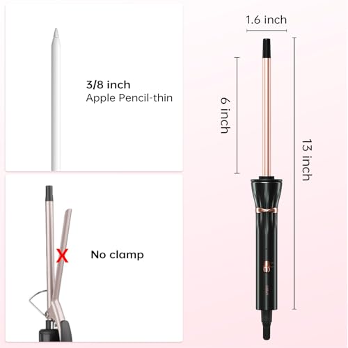Hahahope 3/8 Inch Curling Iron,9mm Tiny Curling Wand,Ceramic Small Barrel Curling Iron with Adjustable Temperature,Fast Heating...