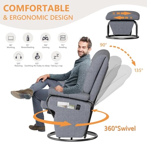 JIASTING 360° Swivel Recliner Chair with Ottoman & Double Side Pockets, Nursing Glider Rocking Recliner Chair, Gliding Chairs f...
