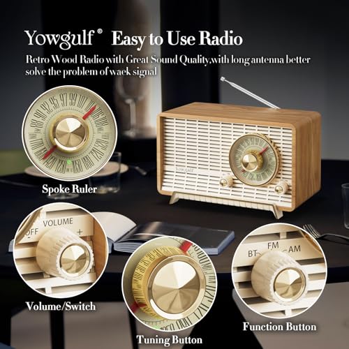 YOWGUIF AM FM Radio Classic Retro Wood Table Radio Bluetooth Speakers Radios Plug-in Wall with Rotary Knob Great for Home, Offi...