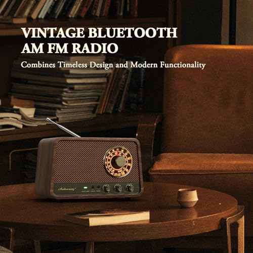 Audiocrazy Vintage Wooden AM FM Bluetooth Radio with 10 Watts Powerful Sound, Retro Bluetooth Speaker Radio with Softly Glowing...