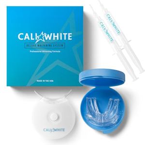 Cali White Teeth Whitening Strip Kit with LED Light and Batteries - Organic Peroxide Teeth Whitener Gel - Set of White Strips -...