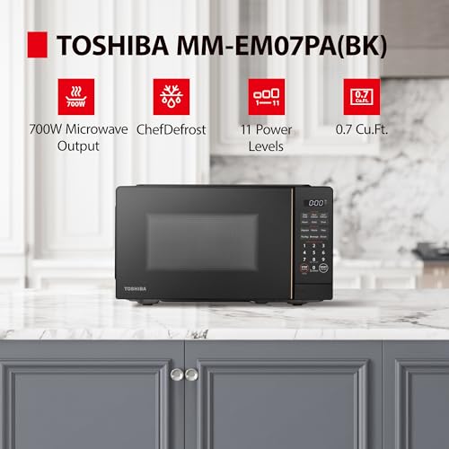 TOSHIBA Small Microwave Oven with 11 Power Levels, ChefDefrost, Sound On/Off & Eco Mode, 0.7 Cu Ft, 700W, Black, MM-EM07PA(BK)