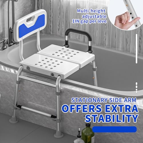 TABEKE Tub Transfer Bench for Bathtub, Tool Free Assembly Shower Chair with Backrest & Armrest, Height Adjustable Shower Bench,...