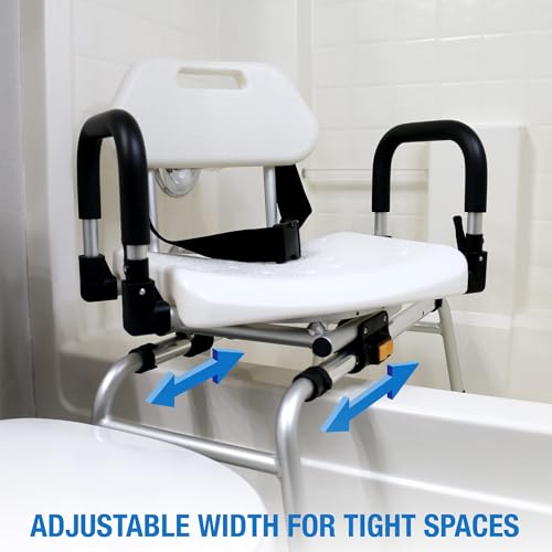 Platinum Health Carousel Sliding Shower Chair Tub Transfer Bench with Swivel Seat, Premium Padded, Pivoting Arms, Adjustable Sp...