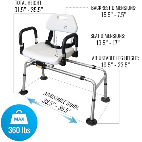 WHLICKS Sliding Shower Chair with Wide 360° Swivel Seat, 450lbs Tub Transfer Bench for Bathtub, Adjustable Height and Arms Widt...