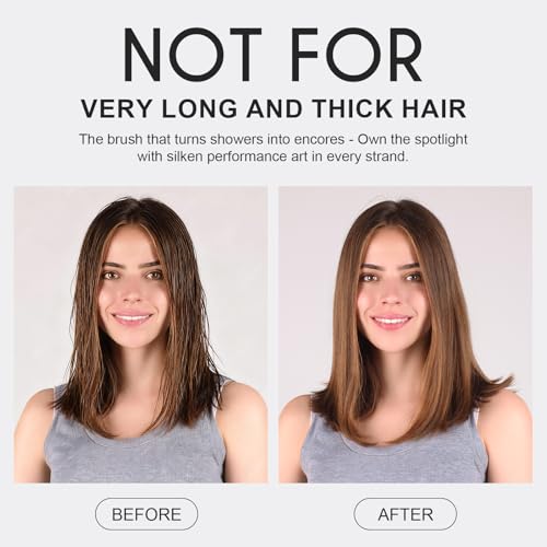 Travel Dual Voltage Hair Dryer Brush 4-IN-1 Portable Mini Hot Air Blow Dryer Straightener & Curler Brush, Titanium Round Blowou...