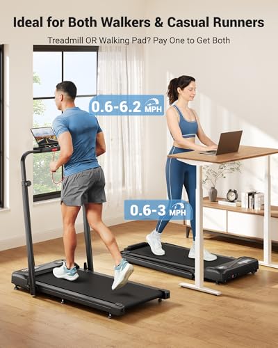 THERUN Walking Pad, 2 in 1 Foldable Treadmills for Home, 2.5HP Under Desk with Handle Bar, 16" Widened Running Belt, with Remot...