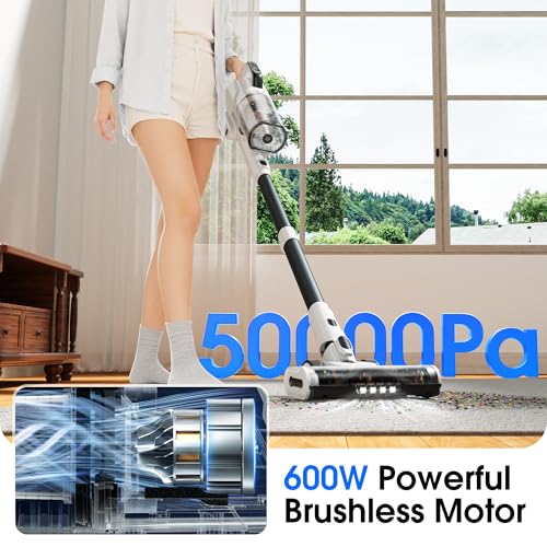 Klarpul Cordless Vacuum Cleaner, 2 Batteries 140 Mins Runtime 600W 50Kpa Stick Vacuum Cordless, Self-Standing Vacuum Cleaners f...