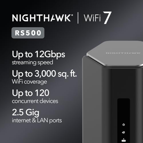 NETGEAR Nighthawk Tri-Band WiFi 7 Router (RS500) – Router Only, BE12000 Wireless Speed (up to 12 Gbps) - Covers up to 3,000 sq....