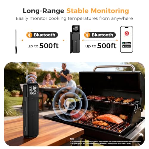 Smart Wireless Meat Thermometer,Digital Cooking Thermometer with Dual High-Accuracy Sensors,Ceramic Heat-Resistant Probe, Insta...