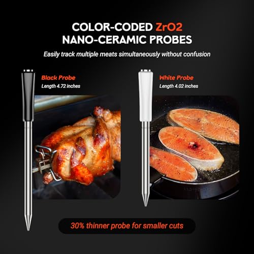Smart Wireless Meat Thermometer,Digital Cooking Thermometer with Dual High-Accuracy Sensors,Ceramic Heat-Resistant Probe, Insta...