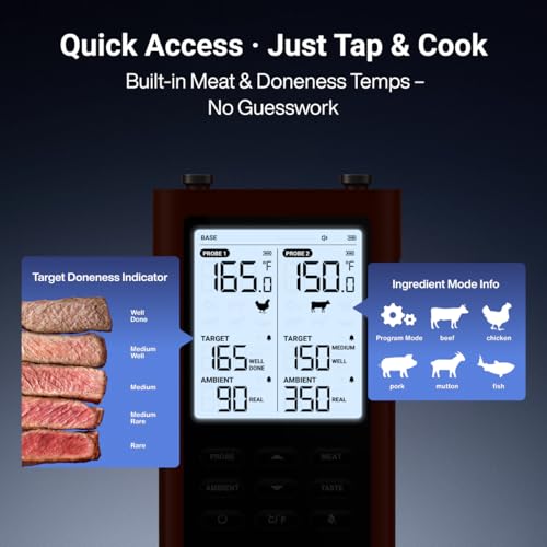ThermoMaven Smart Bluetooth Wireless Meat Thermometer, 10X Enhanced Sub-1G Signal and Stability, Standalone Display Base, Certi...